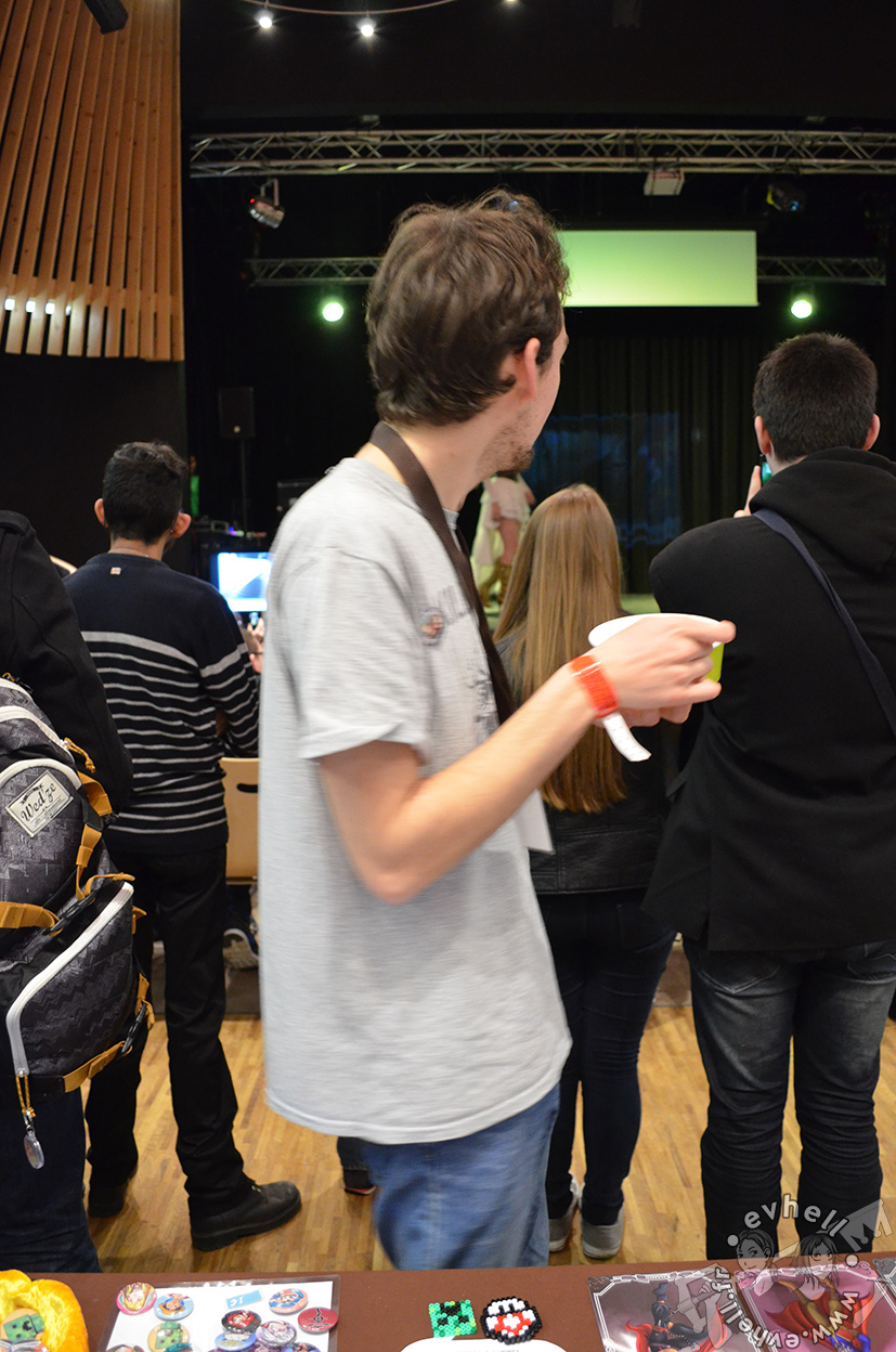La soirée Wazabi, c’était une première pour nous. Placés juste en face de la scène, à côté du stand Wazabi (et de la caméra pour filmer les défilés), on était parfait pour suivre tranquillement les animations, tout en étant quand même présents sur notre stand pour les visiteurs ! C’est donc décontractés qu’on venait assister à cette soirée. En plus, nous avons bénéficié de l’aide d’une nouvelle recrue : vu que nous avions 3 badges, Mktoc, mon beau-frère et youtubeur en devenir s’est proposé de nous filer un coup de main. Et je dois dire qu’il a assuré : on avait à peine besoin de lui expliquer notre organisation, il s’adaptait très vite tout en apportant parfois sa touche personnelle à la disposition du stand ! 😉 Il reviendra sans doute nous aider, dans la mesure du possible de son emploi du temps. On le remercie de tout coeur !