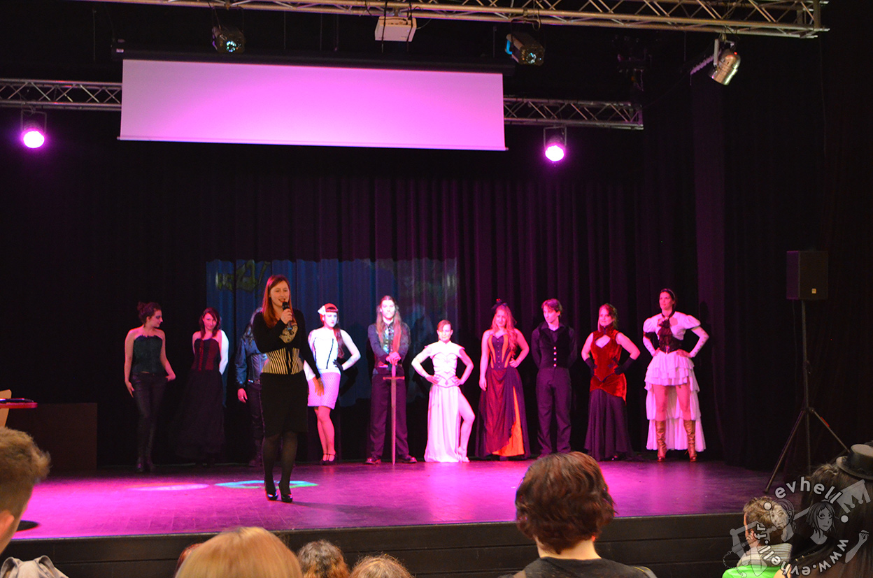 Les animations et les défilés étaient très plaisants à voir. Bizu assure à l’animation ! Datura a présenté des tenues à inspiration gothique/médiévale, qui habillaient aussi bien les femmes que les hommes. Il s’en est suivi le premier défilé de Shun : on la félicite pour cette réussite totale ! Elle nous a servi une prestation très artistique, avec des tenues toutes aussi soignées les unes que les autres, s’alliant très bien ensemble. Il ne manquait aucune couleur à ce grand tableau pour représenter les éléments, le thème du défilé. Florian a tenté de prendre de belles photos tandis que juste à côté Seb Rassiat filmait l’ensemble du défilé de sa chère et tendre, et qu’Aurélien Chevalier, photographe couvrant les différentes conventions de l’Ouest capturait la scène. A côté de ces deux pro avec leur super matos et leur professionnalisme, on se sentait petits ! ^^